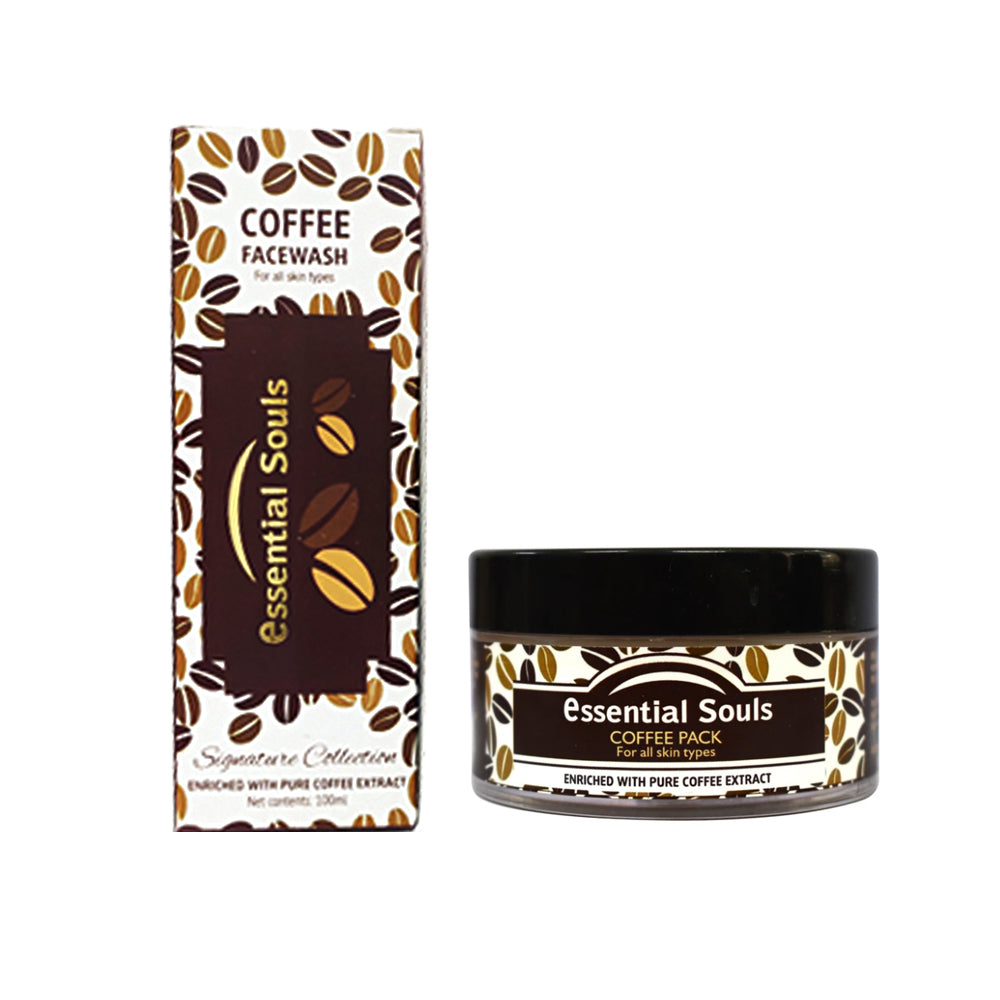 Coffee Facewash - A face wash with the freshness of Coffee, packed with antioxidants that help fight free radicals and slow the ageing process. Essential Souls Face Wash is packed with antioxidant, anti-inflammatory, and anti-aging ingredients. It tightens pores, reverses sun damage, and stimulates blood flow leaving you with even-toned and healthy skin. Coffee increases collagen production to give your skin a youthful appearance.