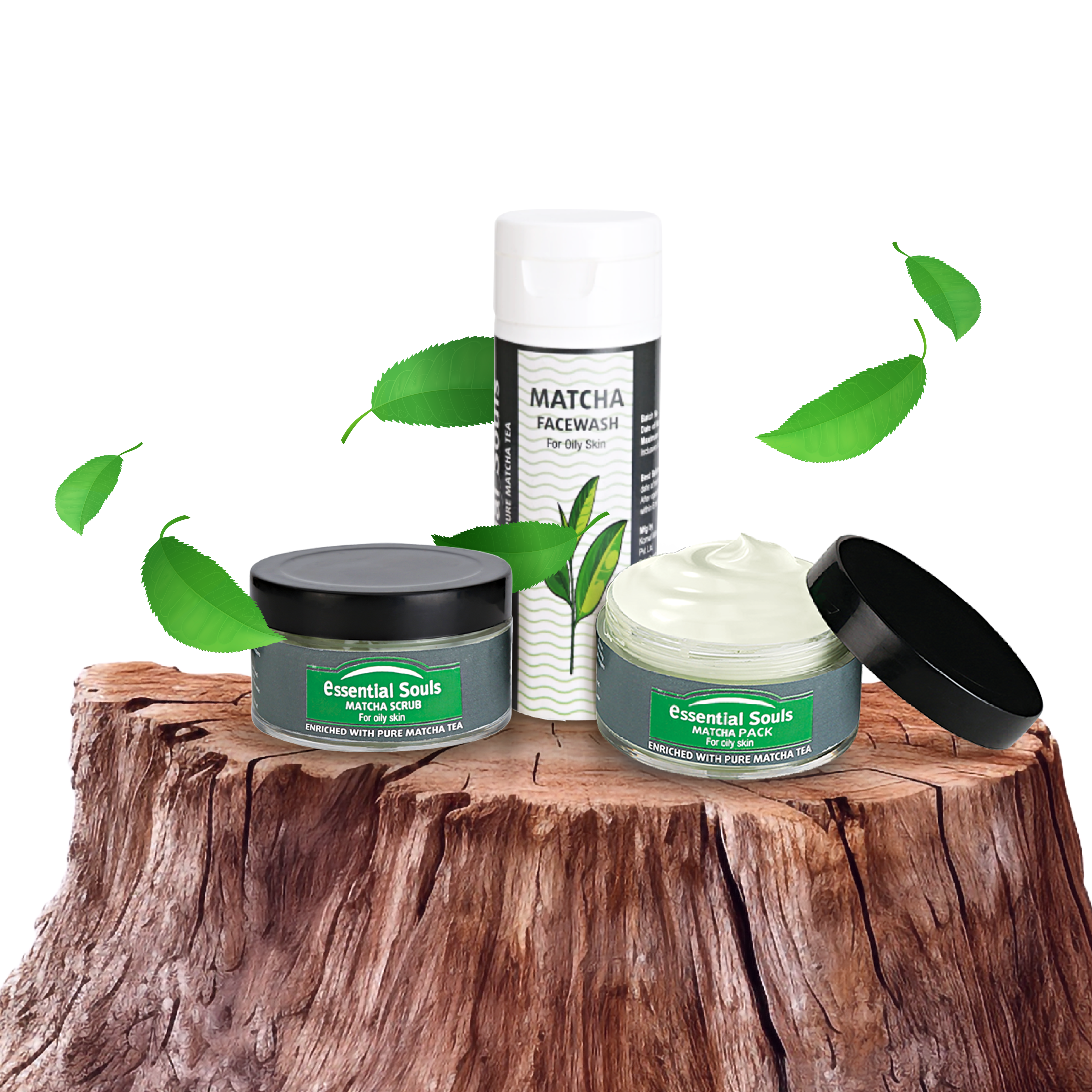 Matcha Scrub - Essential Souls Matcha Face Scrub is a high quality face exfoliator packed with the goodness of pure matcha tea. This gentle scrub removes deep seated impurities, dirt and grime by unclogging the pores and letting the skin breathe. The antioxidant properties of matcha tea detoxifies the skin by removing harmful toxins. This fights free radicals causing cell damage. This product is particularly good for acne-prone skin because it absorbs excess sebum oil and also helps reduce sebum secretion. The anti-inflammatory properties reduce skin irritation and inflammation, and leaves the skin soft, supple and hydrated.