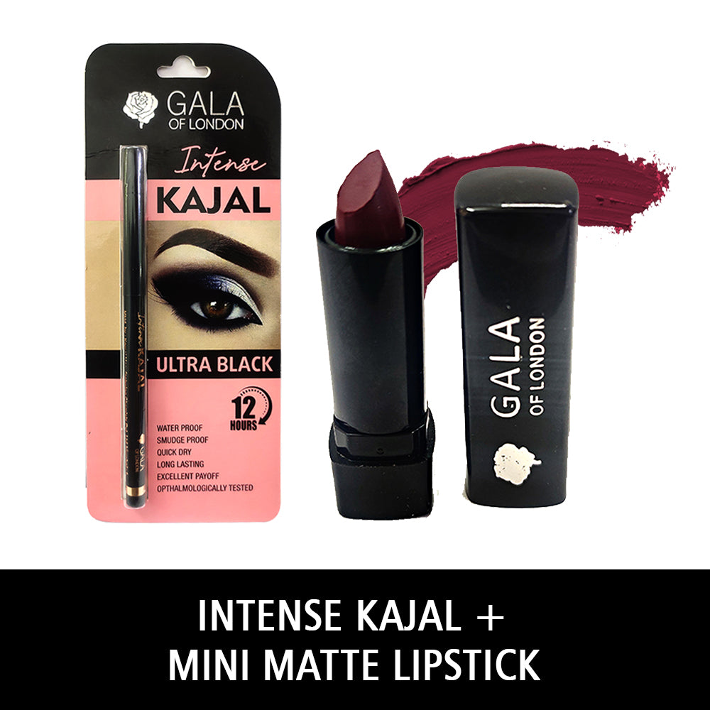 Gala of London Berry Love Combo - Intense Kajal and Mini Matte Lipstick 11 Berry