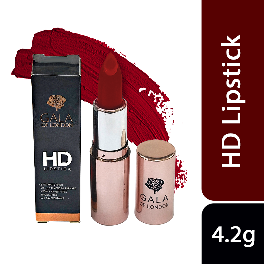 Gala of London HD Lipstick offers a luxurious, richly pigmented formula that glides effortlessly across the lips, delivering vivid color with a single swipe. Crafted for perfection, this lipstick ensures a stunning, high-definition finish that lasts all day. The smooth, creamy texture feels comfortable on the lips and provides intense hydration, preventing the lips from drying out. Available in a range of show-stopping shades, from bold reds to subtle nudes, each color is designed to enhance your smile and complement your individual style.