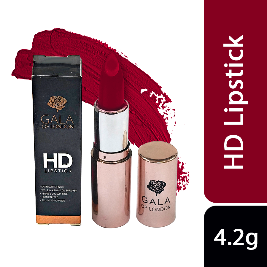 Gala of London HD Lipstick offers a luxurious, richly pigmented formula that glides effortlessly across the lips, delivering vivid color with a single swipe. Crafted for perfection, this lipstick ensures a stunning, high-definition finish that lasts all day. The smooth, creamy texture feels comfortable on the lips and provides intense hydration, preventing the lips from drying out. Available in a range of show-stopping shades, from bold reds to subtle nudes, each color is designed to enhance your smile and complement your individual style.