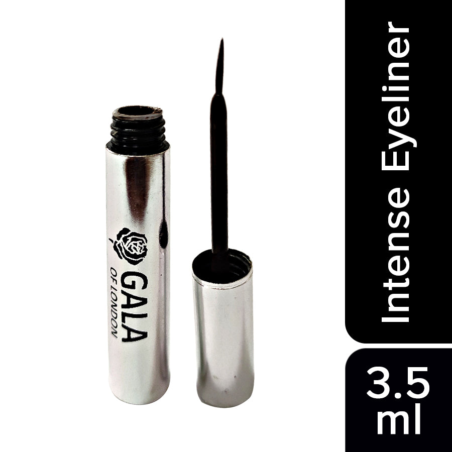 Discover the cult classic waterproof eyeliner that will not budge. Gala of London's Intense waterproof Liquid Eyeliner has always got you covered with a smooth, highly pigmented formula that glides on easily. Create precise graphic looks or a classic feline flick, this flake proof, waterproof eyeliner does it all. Available in 3 stunning shades - BLACK VINYL, CHOCOLATE BROWN & MIDNIGHT BLUE.