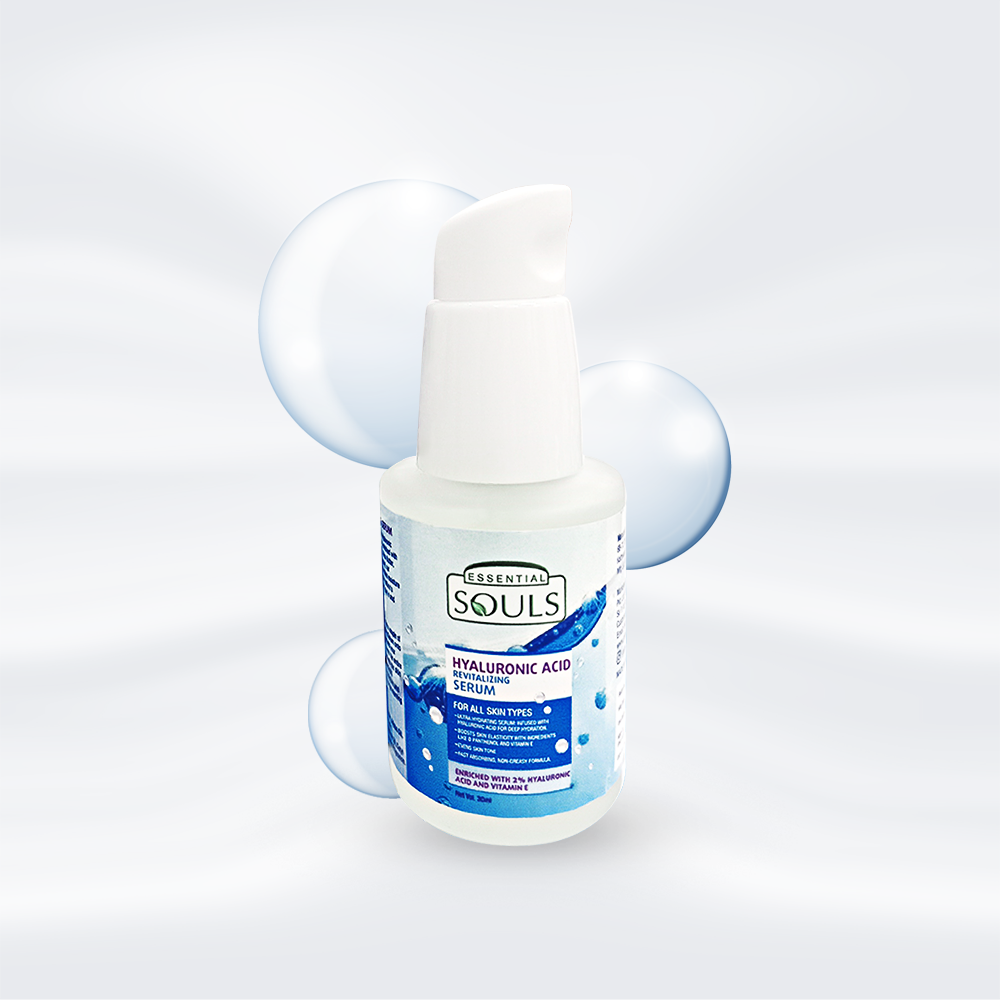 Unveil the essence of nature, with essential souls hyaluronic acid revitalizing serum. Dive deep into hydration, enriched with a symphony of nourishing ingredients: vitamin E, Shia, butter, and jojoba oil. Fortified with Nia, Cynamide, and Aquxyl , our formula, combats, aging, promotes radians, and retains moisture to to reveal your skins natural luminescence. Trust in natures finest blend to replenish and rejuvenate your skin, day in and day out. Perfectly natural, purely essential.