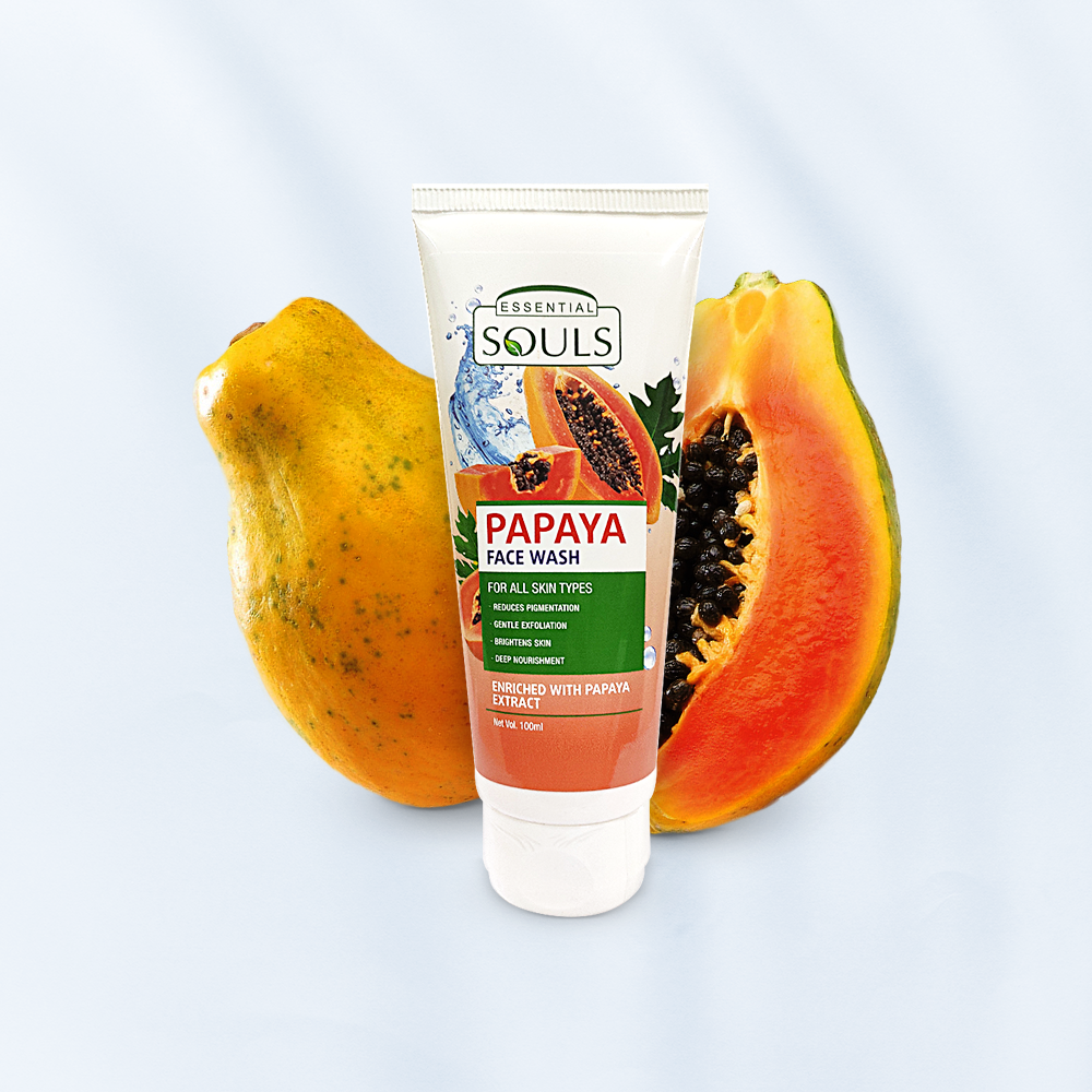 Discover the secret to a flawless complexion with essential souls Papaya face wash. Harnessing the power of papaya, renowned for its anti-pigmentation and dark spot. Reducing properties, this natural blend gently exfoliates and brightens your skin. With cranberry, watermelon, and white, mulberry extracts, it deeply nourishes, leaving your skin, radiant and even toned. Embrace the magic of nature for a Clara, vibrant complexion with essential souls – your daily dose of skin wellness.